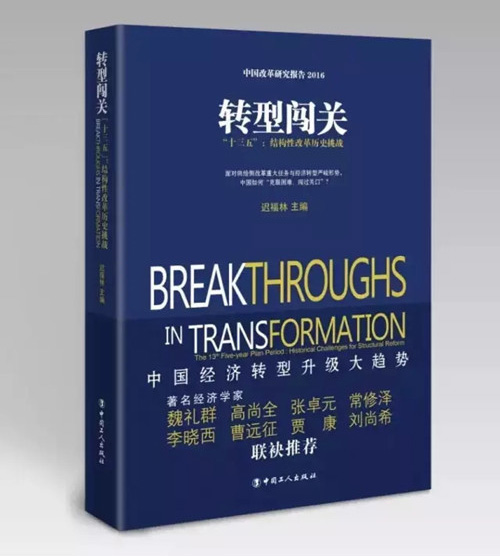 2016年2月25日,由中國(海南)改革發(fā)展研究院(以下簡稱中改院)、中國工人出版社主辦的《轉(zhuǎn)型闖關(guān)——“十三五”:結(jié)構(gòu)性改革歷史挑戰(zhàn)》新書發(fā)布會在京舉行。中國行政體制改革研究會會長、中改院董事局主席魏禮群,原國家體改委副主任、中改院名譽院長高尚全,中國經(jīng)濟體制改革研究會顧問宋曉梧,全國人大常委員會委員、外事委員會副主任委員趙白鴿,中國社會科學(xué)院學(xué)部委員張卓元,商務(wù)部原部長助理黃海,國家發(fā)展和改革委員會經(jīng)濟研究所教授常修澤,北京師范大學(xué)校學(xué)術(shù)委員會副主任李曉西,中銀國際研究公司經(jīng)濟學(xué)家曹遠征等專家出席本次發(fā)布會。